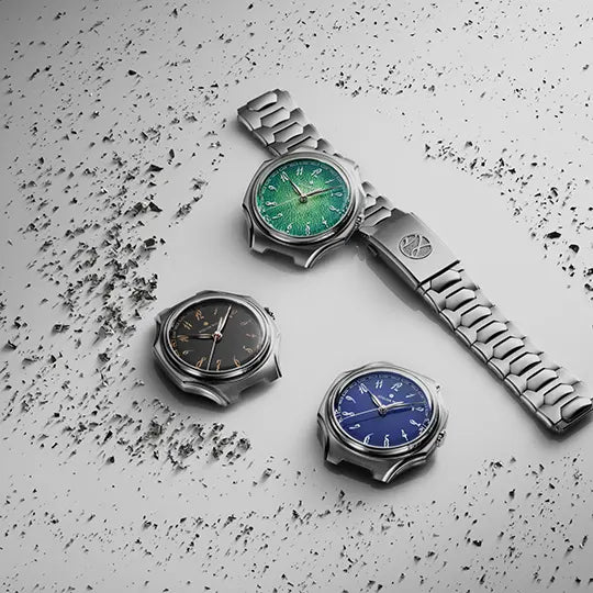 - Green - 幽 (Yōu) - limited to 30 pieces, featuring a hand-hammered dial base and a gradient that is especially challenging to achieve, ranging from pale green in the middle to deep viridian at its edges in translucent enamel.