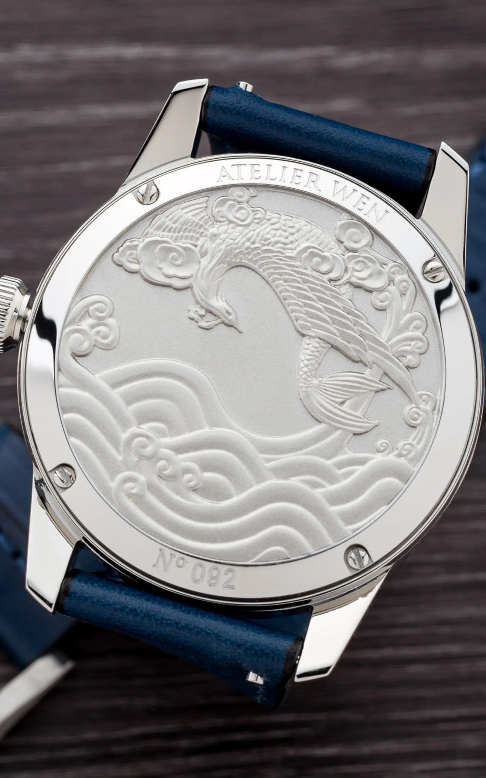 - Deeply-embossed, closed caseback with Kun Peng motif, sand-blasted texture and subtle polished accents.