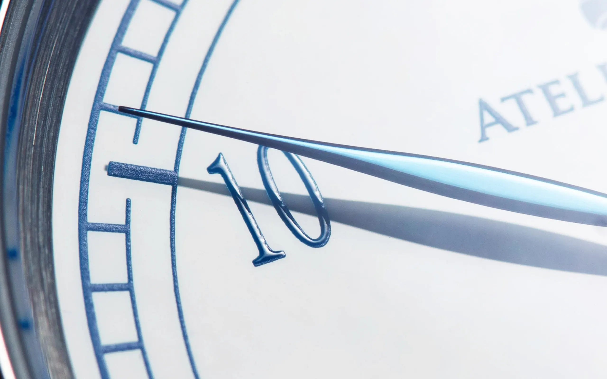 surface of its porcelain, and is complemented with a handcrafted set of heat-blued leaf hands that fit in with