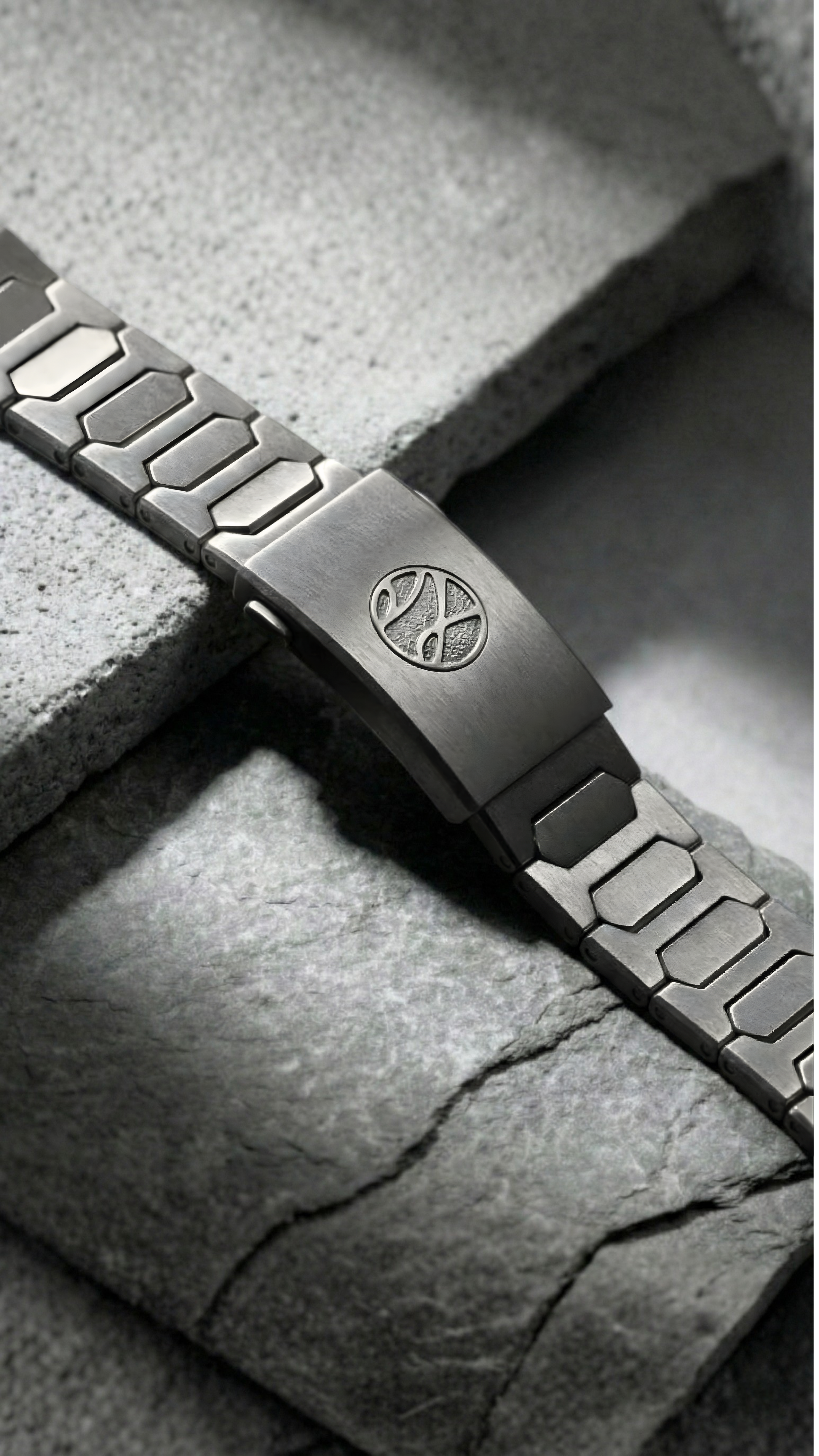 This bracelet has been crafted from grade 5 titanium, known for its remarkable strength-to-weight ratio and